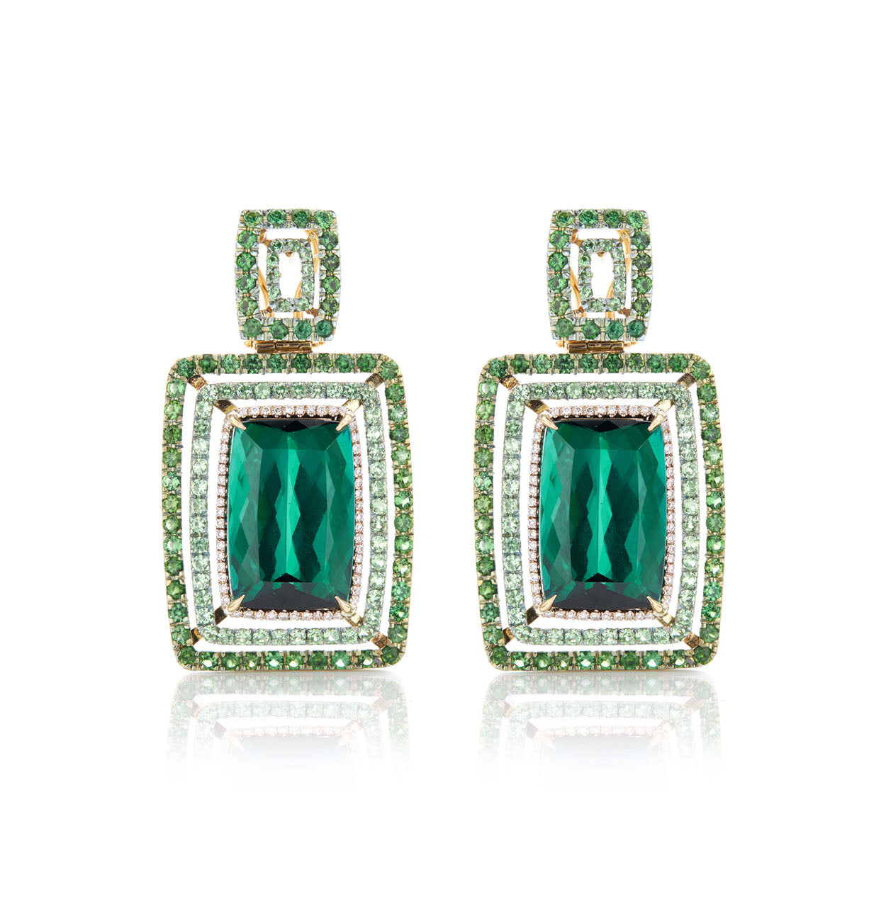 Oro 18kt e titanio con cabochon di tormalina 45carati e tormalina verde 5.60 carati, 0.70ct diamanti